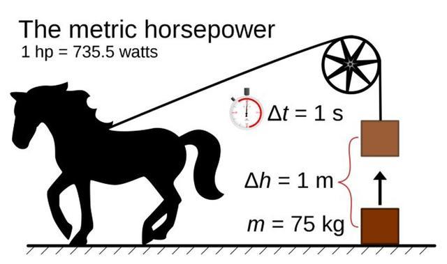 研究发现,这匹马1秒钟能把75千克的物体提高1米,于是将这匹马做功的速度定义为1马力,后人也将马力作为动力机械的功率单位,一直沿用至今。但在我国马都是用“匹”来计量,所以1马力也就是1匹。