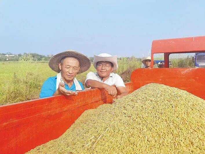 可湿漉漉的稻谷,含水量接近40%。“今晚就得烘干!”合作社理事长周伟抓起一把稻谷,揉开谷壳,尽管淋了雨,但品质不赖。合作社收下稻谷后,王长友满意地跳上拖拉机,“突突突”地开走了。